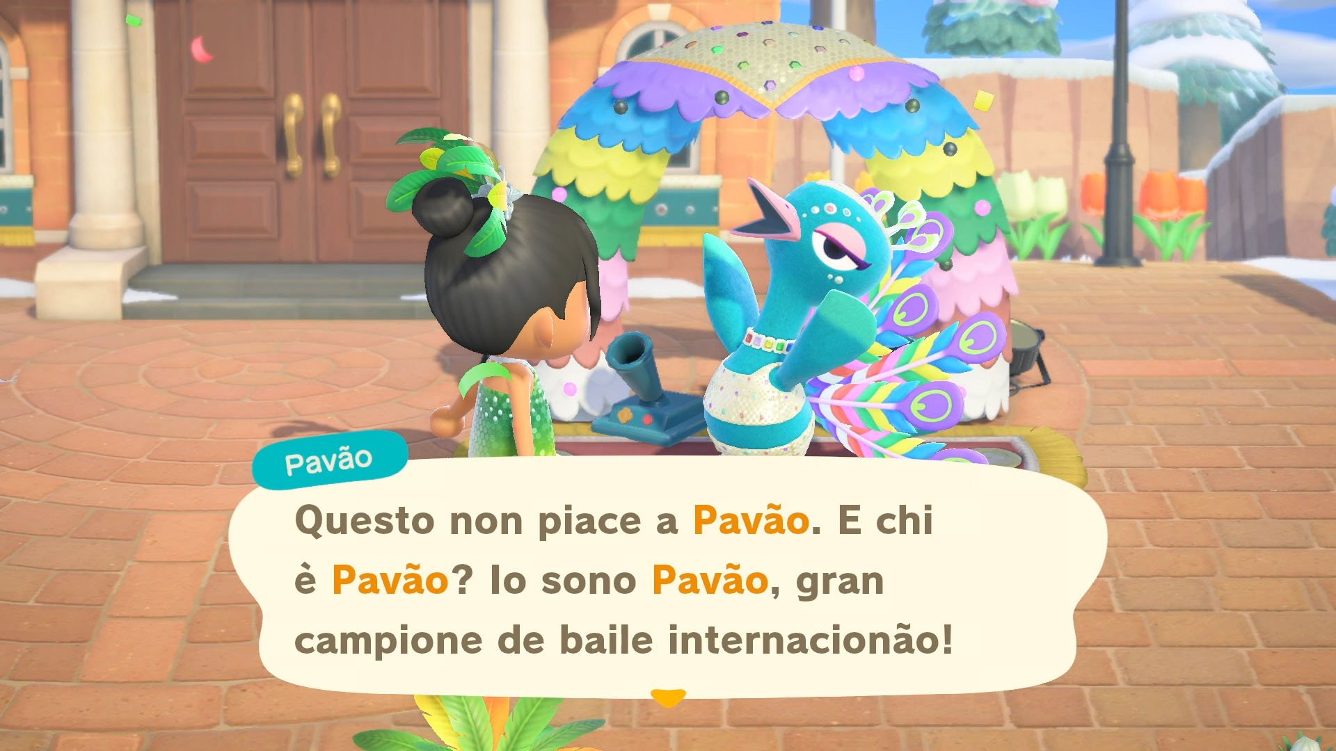 Un carnevale è proprio quello che ci vuole in questo periodo così tetro e a tratti cupo. Prepariamoci quindi a una ondata carnevalesca, con una miriade di piume colorate che volteggeranno in giro per l’isola. Proprio il giorno del 15 Febbraio, arriverà lo spirito di carnevale della saga di Animal Crossing: Pavão. Esattamente in questa giornata potremo catturare col retino numerose piume coloratissime, che potranno poi essere scambiate con oggetti a tema. Chiaramente il tutto a ritmo di danza targata Pavão. Non lasciatevi però sfuggire le preziose piume arcobaleno… sono alquanto rare.