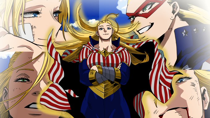 Direttamente dall’America ecco che arriva Cathleen Bate, l’eroina Star and Stripe. Disegnata quasi come fosse uscita da un fumetto occidentale, si presenta in un design molto “patriottico” e molto simile a All Might (anche data la sua ammirazione verso quest’ultimo).